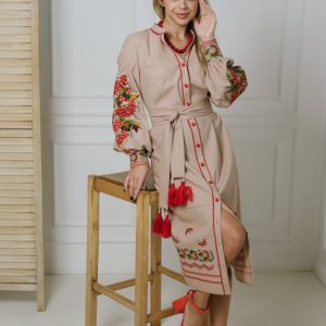 Жіноча вишита сукня Калина (бежева)