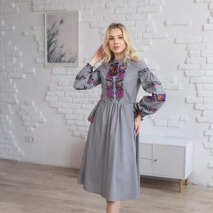Жіноча вишита сукня Мальва (сіра)