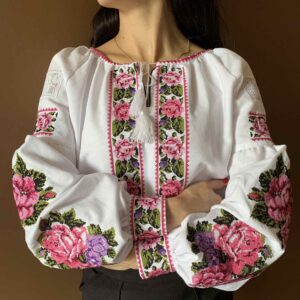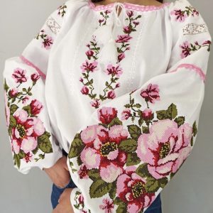 Жіноча вишиванка Рожеві Троянди (біло-рожева)