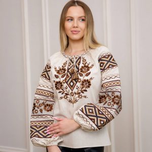 Жіноча вишиванка Ярослава (беж з коричневим)