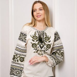 Жіноча вишиванка Ярослава (беж з зеленим)