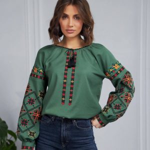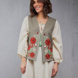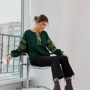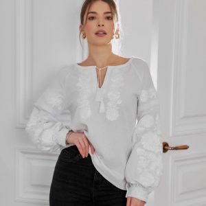 Жіноча вишиванка Яворівна (молочна з червоним)