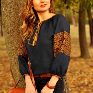 Жіноча вишиванка Липа (темно-синя)