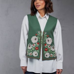 Жіноча вишита жилетка Петриківка (зелена)