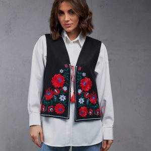 Жіноча вишита жилетка Петриківка (чорна)
