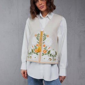 Жіноча вишита жилетка Петриківка (беж)