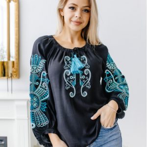 Жіноча вишиванка Марта (чорно-блакитна)