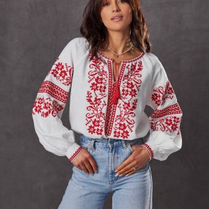 Жіноча вишиванка Бандерівка ( біло-червона)