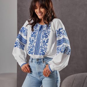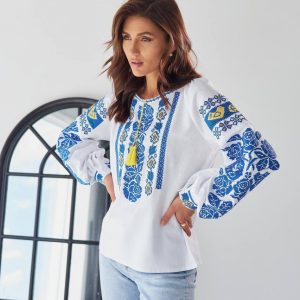 Жіноча вишиванка Бандерівка (біло-блакитна)
