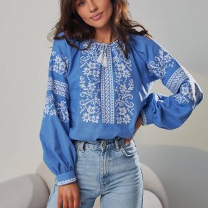 Жіноча вишиванка Бандерівка (блакитна)