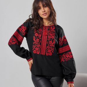 Жіноча вишиванка Бандерівка (чорно-червона)