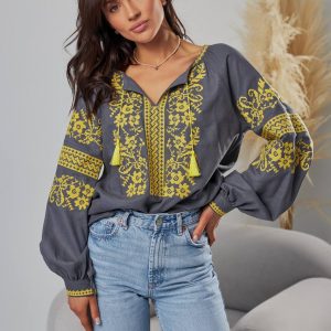 Жіноча вишиванка Бандерівка (сіро-жовта)