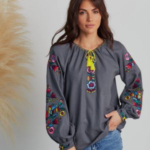 Жіноча вишиванка Аничка (біло-чорна)