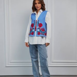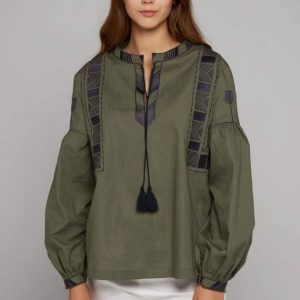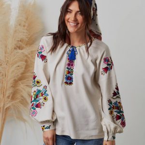 Жіноча вишиванка Залісся (бежево-блакитна)