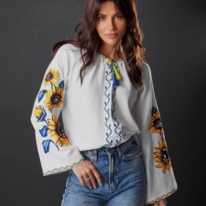 Жіноча вишиванка Соняхи (біла)