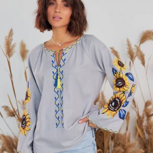 Жіноча вишиванка Соняхи (сіра)