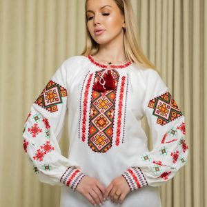 Жіноча вишиванка Руслана (молочна з червоним)