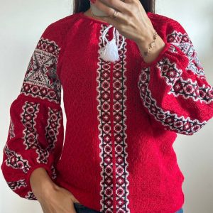 В’язана жіноча вишиванка Газдиня (червона)