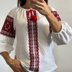В’язана жіноча вишиванка Газдиня (біло-червона)