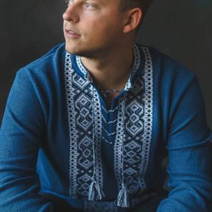 В’язана чоловіча вишиванка Газда (блакитна)