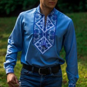 Чоловіча вишиванка Говерла (блакитно-біла)