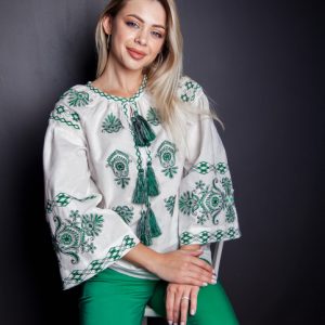 Жіноча вишиванка Полісся ( біло-зелена)
