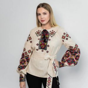 Жіноча вишиванка Богуслава (беж з вишневим )