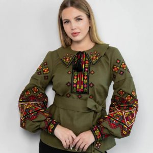 Жіноча вишита сорочка Карпатська (хакі)