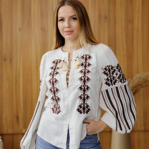 Жіноча вишиванка Залісся (беж-меланж)
