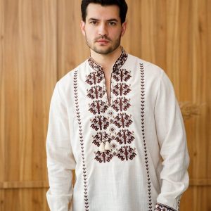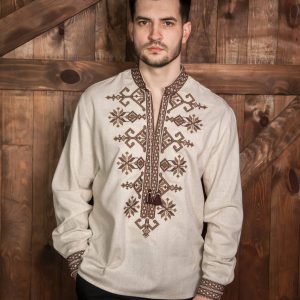 Чоловіча вишиванка Залісся (беж-меланж)