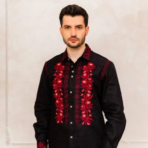 Чоловіча вишиванка Мирослав (чорна з червоним)