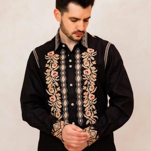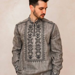 Чоловіча вишиванка Мирослав (чорна з бежевим)