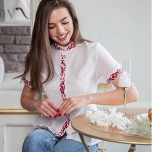 Жіноча вишиванка Рожеві Мрії (біло-рожева)