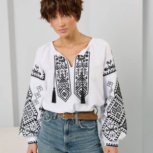 Жіноча вишита сорочка Оберіг (біло-чорна)