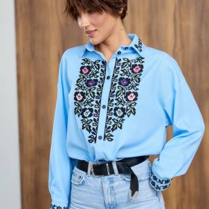 Жіноча вишиванка Трембіта (блакитна)