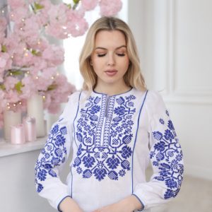 Жіноча вишиванка Влада (біло-синя)