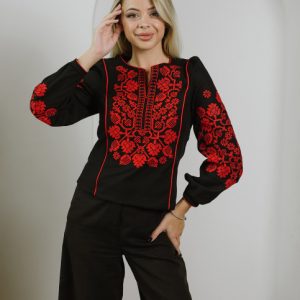 Жіноча вишиванка Влада (чорно-червона)