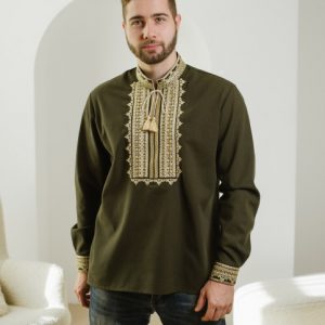 Чоловіча вишиванка Традиція (хакі з золотим)