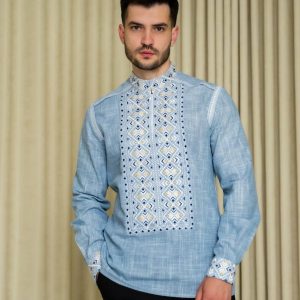 Чоловіча вишиванка Лаврін (блакитна з білим)