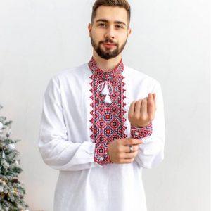 Чоловіча вишиванка Святослав (біло-червона)