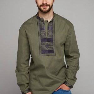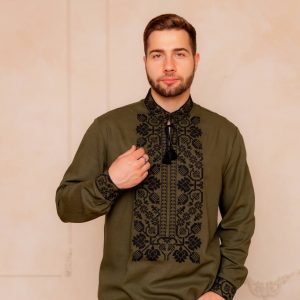 Чоловіча вишиванка Всеволод (хакі з чорним )