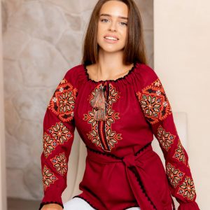 Жіноча вишиванка Сузір`я (бордо з оранжевим)