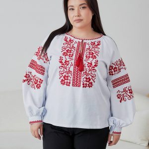 Жіноча вишиванка Бандерівка (біло-червона) Батал