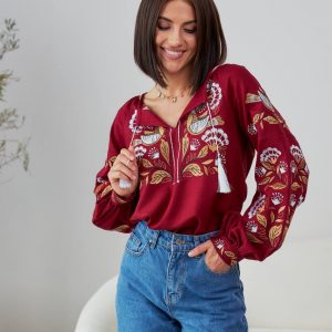 Жіноча вишиванка Дивоцвіт (бордо)