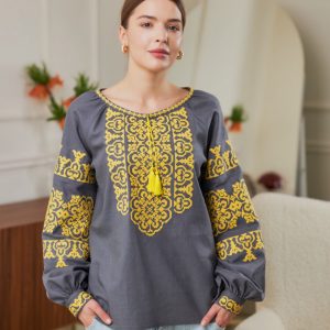 Жіноча вишиванка Козачка (сіро-жовта)