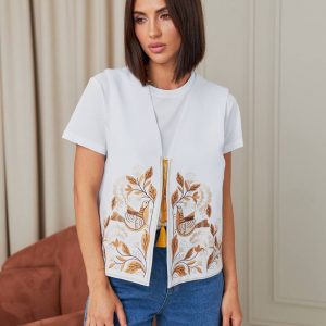 Жіноча вишита жилетка Дивоцвіт (біла)