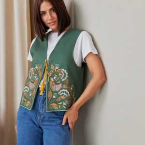 Жіноча вишита жилетка Дивоцвіт (зелена)