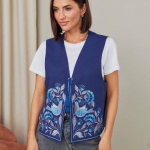 Жіноча вишита жилетка Дивоцвіт (синя)