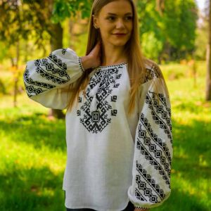 Жіноча вишита сорочка Світанок (біла з чорним)