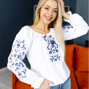 Жіноча вишиванка Вінок( біло-синя)